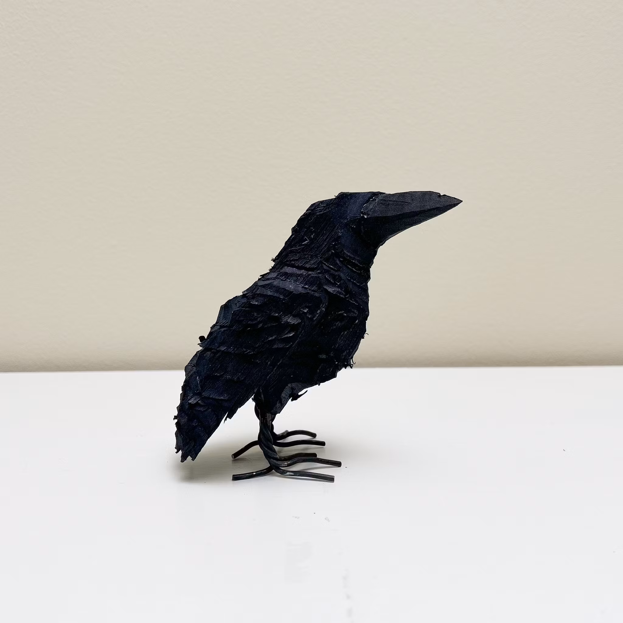 Fågel i svart trä med metallben. Ca 10 cm hög.