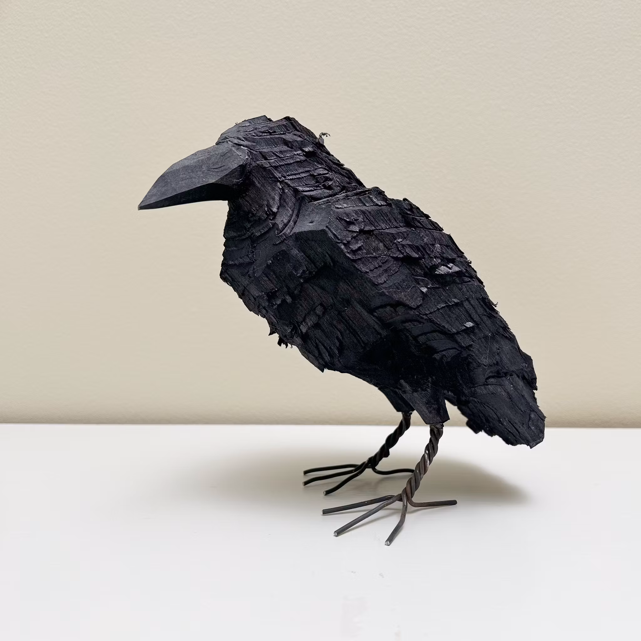 Stor korp i svart trä I lager. 1 250 kr Lägg i korgen Fågel i svart trä med metallben. Ca 16 cm hög.skickas inom 7 vardagar.